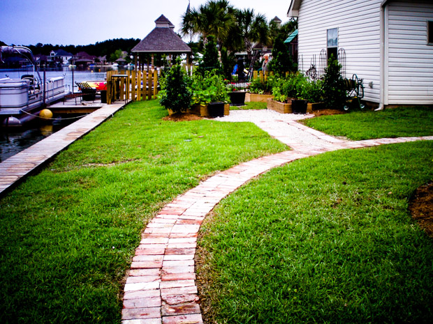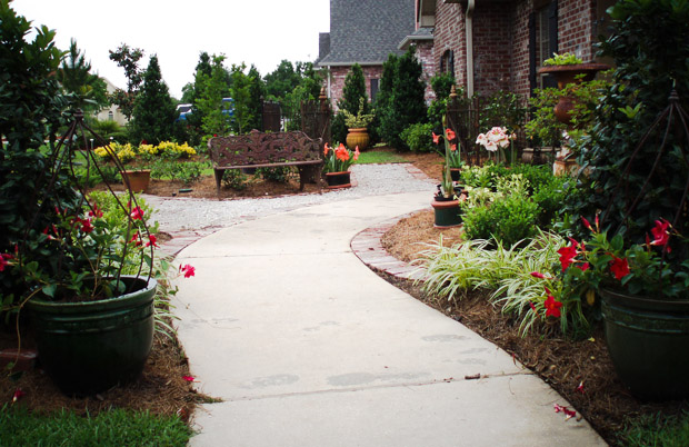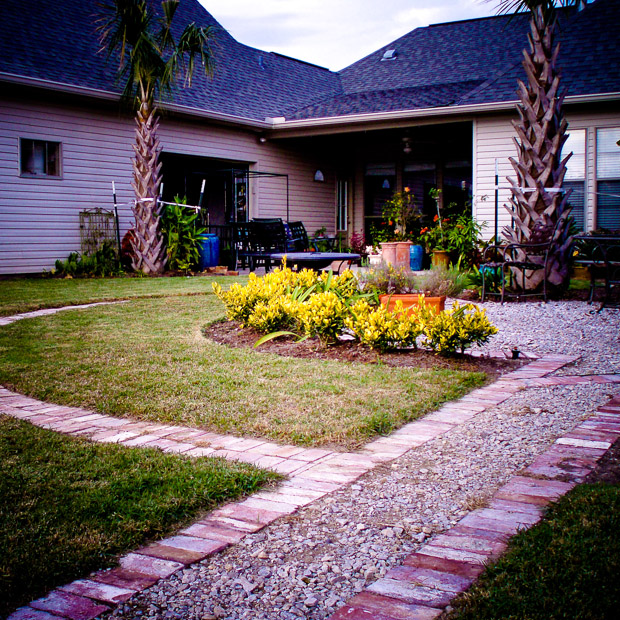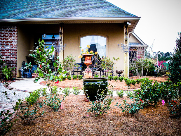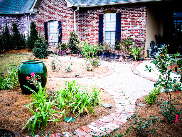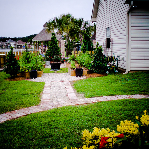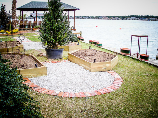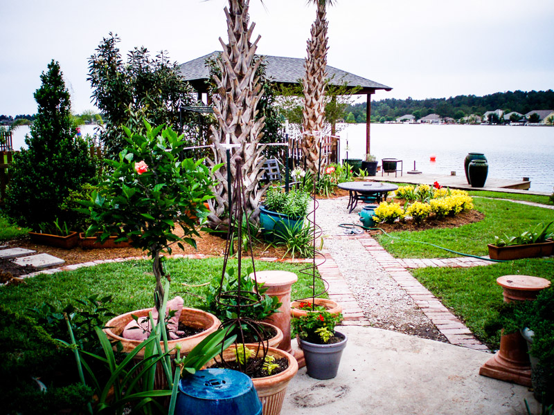One of the most important aspects of this project on Lake Ramsey outside Covington was the incorporation of our client’s extensive collection of pottery and garden furniture. Outdoor living was an important element to this design as well as the inclusion of raised vegetable gardens and space for our client to cultivate her amaryllis.